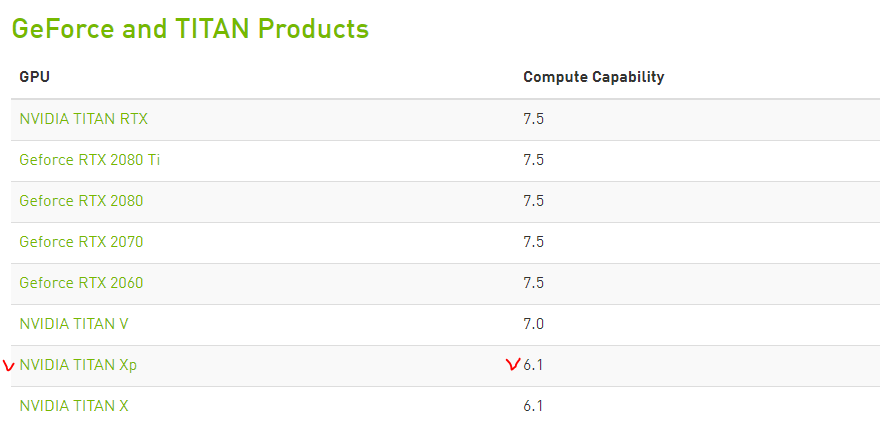 현재 Titan Xp를 사용하려고 하고 Compute Capability는 6.1