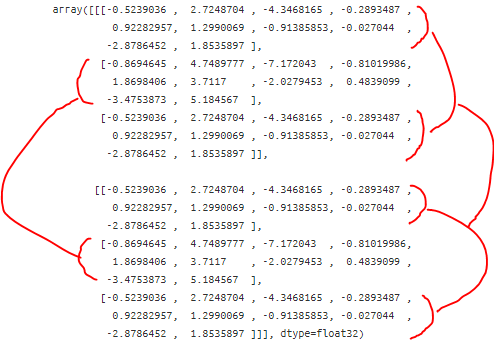a tensor에서 지금 보면 1인 부분에는 같은 값이 나온 것을 알 수 있고,