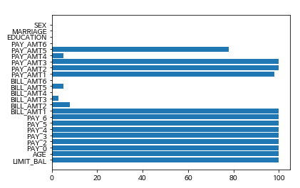 plt.yticks(np.arange(len(a)),labels = train_x.columns.tolist())