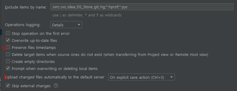 그 다음에 새로운 문제가 발생 원격지 서버의 timestamp 설정 문제로 에러가 발생하는 경우가 있는데 그럴 때는 preserve files timestamp 체크를 해제하면 해결할 수 있다고 함.