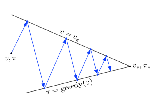 우리가 이러한 것이 가능한 이유는 Finite MDP를 가정하기 때문에 정책의 개수는 유한하며, 유한 횟수의 반복을 통해 최적 정책 및 최적 가치 함수로 수렴할 것이다.