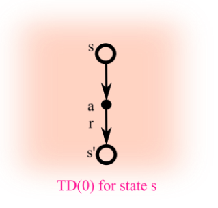 이때 등장하는 개념이 sample back-up입니다. 즉, 모든 가능한 successor state와 action을 고려하는 것이 아니고 Sampling을 통해서 한 길만 가보고 그 정보를 토대로 value function을 업데이트한다는 것입니다. 이렇게 할 경우 계산이 효율적이라는 장점도 있지만 "model-free"가 가능하다는 특징이 있습니다. 즉, DP의 방법대로 optimal 한 해를 찾으려면 매 iteration마다 Reward function과 state transition matrix를 알아야 하는데 sample backup의 경우에는 아래 그림과 같이 <S, A, R, S'>을 training set으로 실재 나온 reward와 sample transition으로서 그 두 개를 대체하게 됩니다. 따라서 MDP라는 model을 몰라도 optimal policy를 구할 수 있게 되고 "Learning"이 되는 것입니다. sample이라면 개념이 좀 어렵게 다가올 수도 있는데 처음에 강화 학습이 trial and error로 학습한다 했던 것을 떠올려서 sample이 하나의 try라고 생각하면 이해가 잘 될 것 같습니다. 즉, 머리로 다 계산하고 있는 것이 아니고 일단 가보면서 겪는 experience로 문제를 풀겠다는 것입니다.