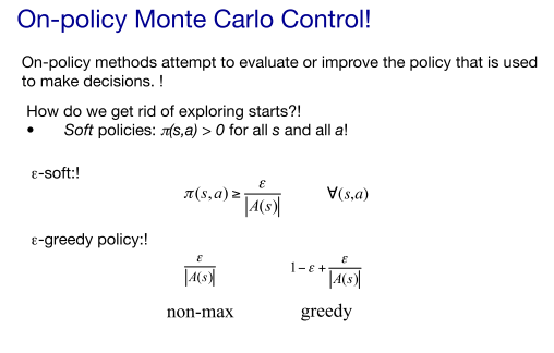 하지만 이런 식으로 실제 상황과 맞지 않는 Exploring start를 쓰지 않기 위해서 고안된 방법이 on-policy와 off-policy가 있습니다.