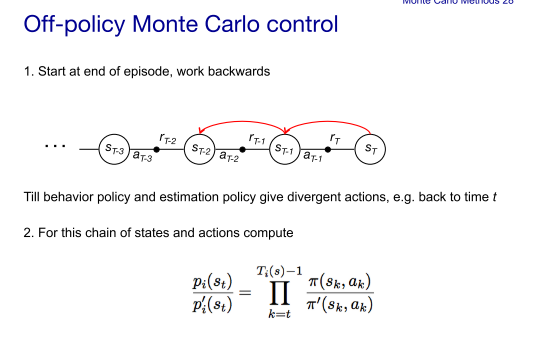 off-policy는 다른 정책을 사용하기에 importance sampling이 필요