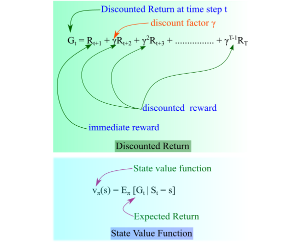 Expected Return(기대된 이득)은 discounted된 모든 보상의 합을 의미합니다.