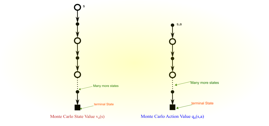 - MC(Monte-Carlo)는 샘플링된 에피소드로부터 학습하는 방법입니다.