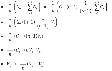 위의 식을 하나의 state에 대해서만 생각한다고 했을 때 가장 최근에 얻은 보상 $G_n$만 분리해서 쓰면 다음과 같이 쓸 수 있습니다.