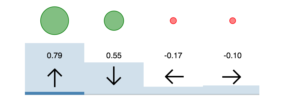 만약 에이전트가 4개의 행동이 가능하다면, $\epsilon$-greedy에서는 최적이 아닌 것에 대해서는 똑같이 고려하지만, Boltzmann 탐험은 상대 가치에 의해 가중치가 측정된다.