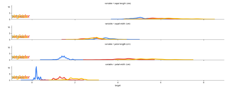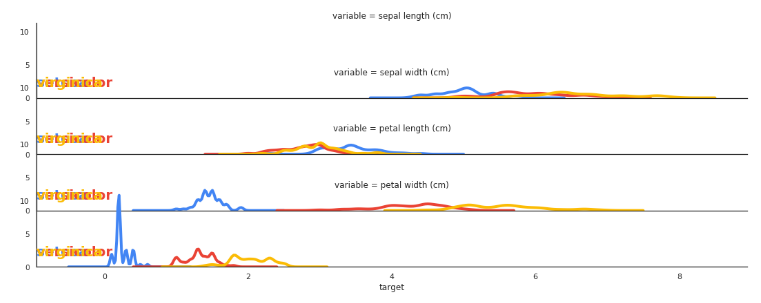 hue="target", #define the column for each subplot color to be differentiated by