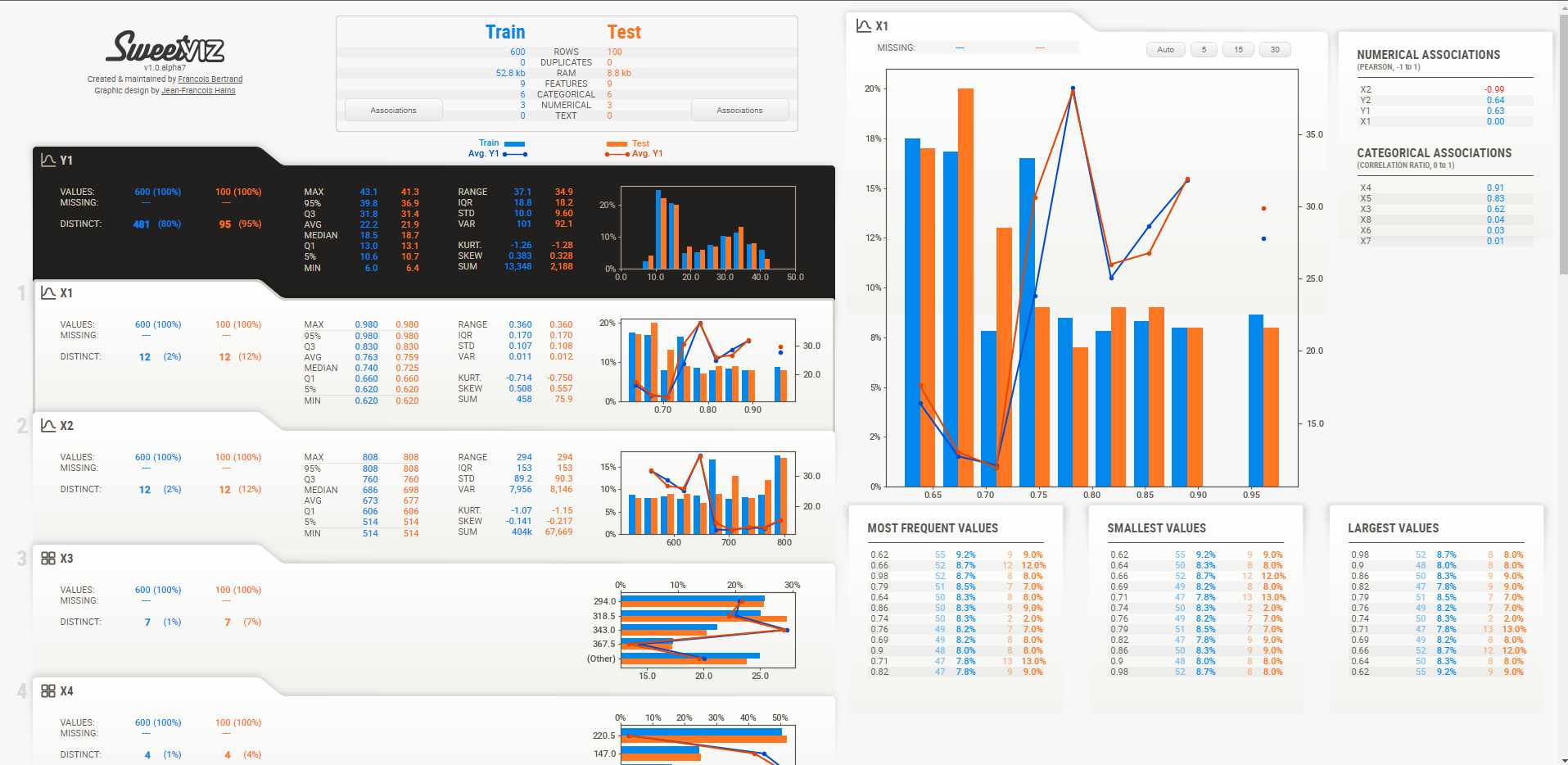 df1 = sv.compare([df.sample(600),"Train"], [df.sample(100),"Test"], "Y1")