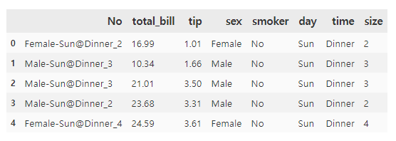 tip.insert(0, 'No', tip[cols].apply(lambda row: make_original(row) , axis=1))