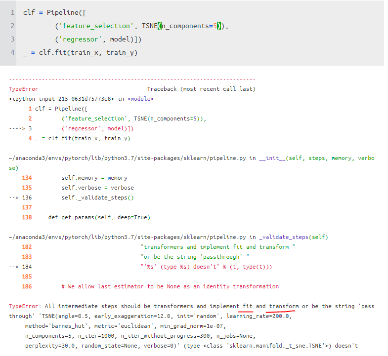 그러나 돌릴 수 있는 것들은 그 모듈의 아규먼트 중에서 fit, transform을 가지고 있는 경우만 가능하다.