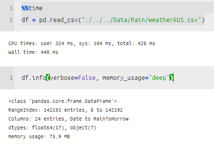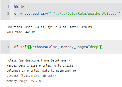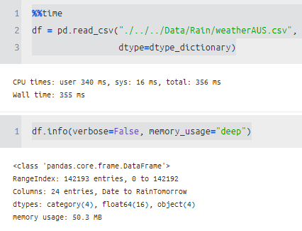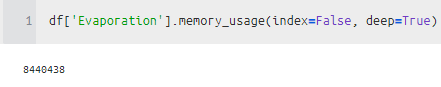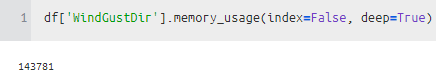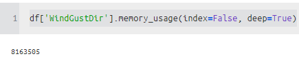 WindGustDir 같은 경우 object를 category로 바꿔주니 메모리가 많이 줄어든 것을 알 수 있다.