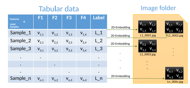 해당 논문은 글자를 이미지를 이용해서 분류하는 방법론을 정형데이터도 이미지로 만들어서 적용하였다.