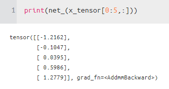 ('layer1.bias', tensor([0.0574]))])optimizer = torch.optim.Adam(net_.parameters(), lr=1e-3) ## gradient descent y_pred = net_(x_tensor) loss = criterion(y_pred , y_tensor) optimizer.zero_grad() loss.backward() optimizer.step()
