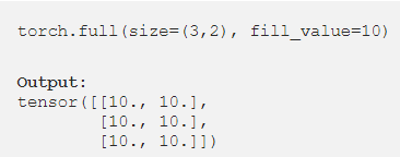 torch.full(size=(3,2), fill_value=10)