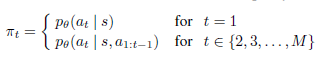 위에 식수에서 이 문제에서 $t$는 node를 의미하고, autoregressively 하게 이전 액션을 반영한 행동을 취하게 하는 policy를 설계한 것 같다.