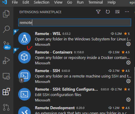 2) extension에는 Remote-Containers를 설치해준다.