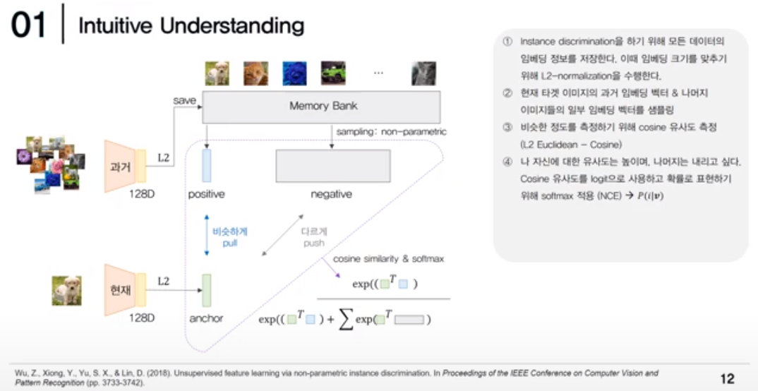 필자도 이번에 보는 거라 잘 알지는 못하지만, 직관적으로 이해한 것은 embedding 값을 얻고 싶은데, 얻는 방법을 비지도 방법으로 하고 싶은 것이고, 비지도 방법 중에서 사용한 방법이 contrastive learning 방법이고, 이 방법은 유사한 것은 유사하게 하고, 먼 것은 더 멀게 하는 마치 word2 vec과 같은 방법을 의미한다.