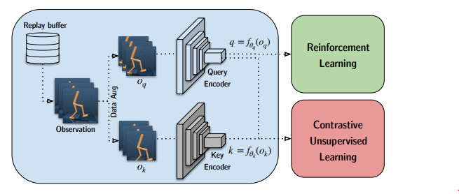 queries는 RL 알고리즘에 사용되고, query-key pairs들은 모두 contrastive learning 에 사용한다.