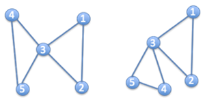 시각적으로는 두 개의 그래프가 다른 형태인 것을 알 수 있지만, 인접 행렬은 동일한 것을 알 수 있다.