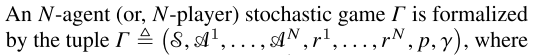 stochastic game에서 N개의 에이전트를 다음과 같이 구성할 수 있다.