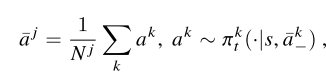 $\bar{a}$는 agent j의 주변 에이전트들의 평균 액션을 의미함.