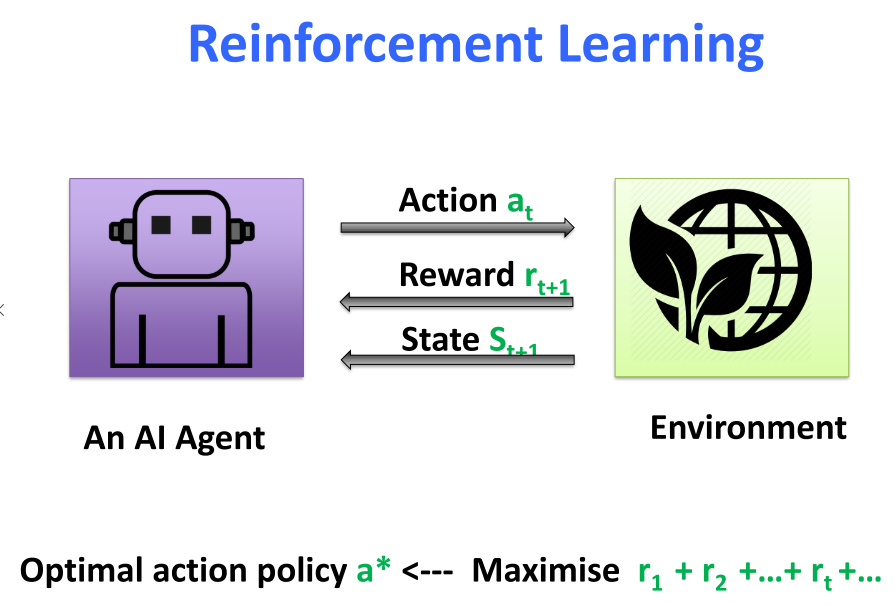 - 할인 계수 γ로 할인된 미래 보상을 최대화하기 위해 상태를 행동에 매핑하는 것을 의미한다.