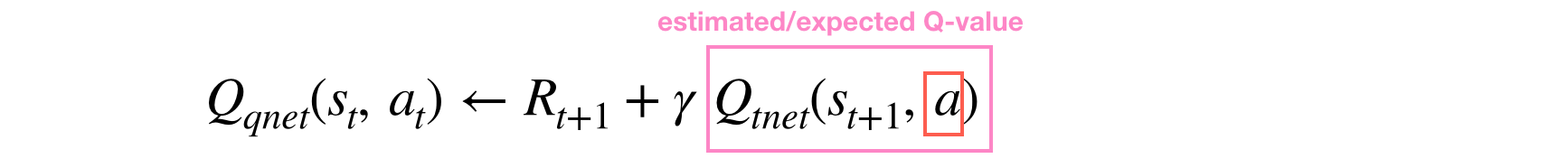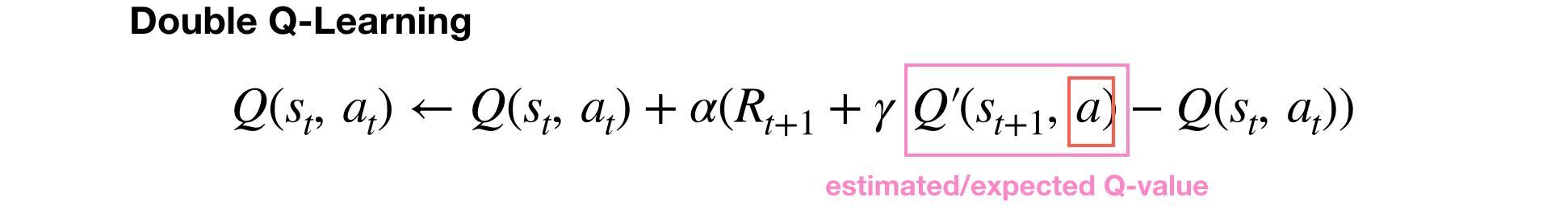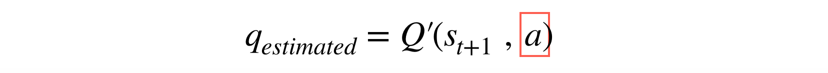 Q' 함수는 위에서 선택된 행동 a를 사용하여 기댓값 Q-value를 계산하기 위한 것입니다.