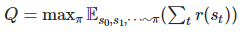 마찬가지로 강화 학습에서 action-value에 대한 적절한 함수 정의(Q)는 maximum expected total reward이다.