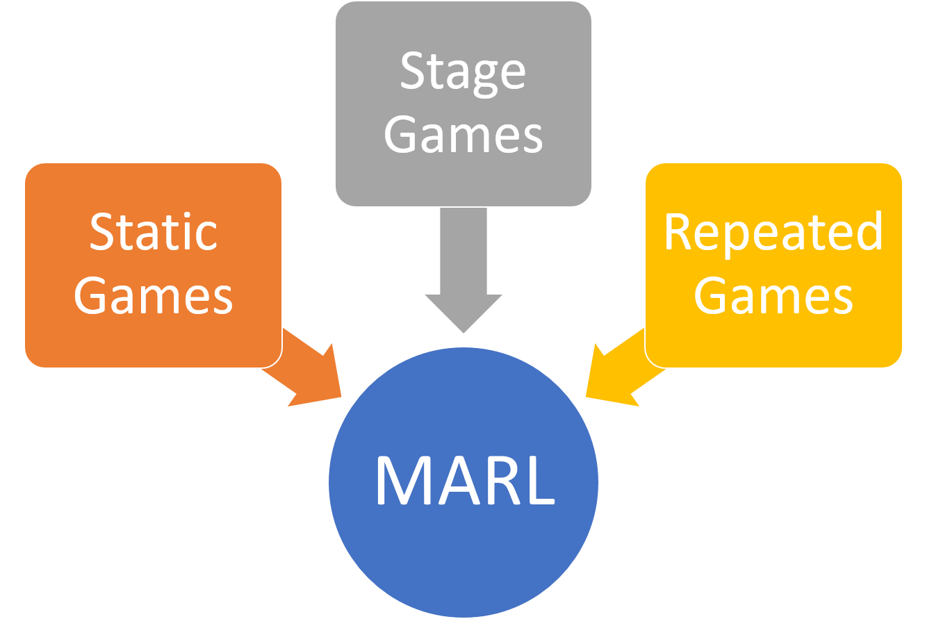 대부분 MARL 시나로 이들은 static, stage, repeated games로 모델링 됩니다.