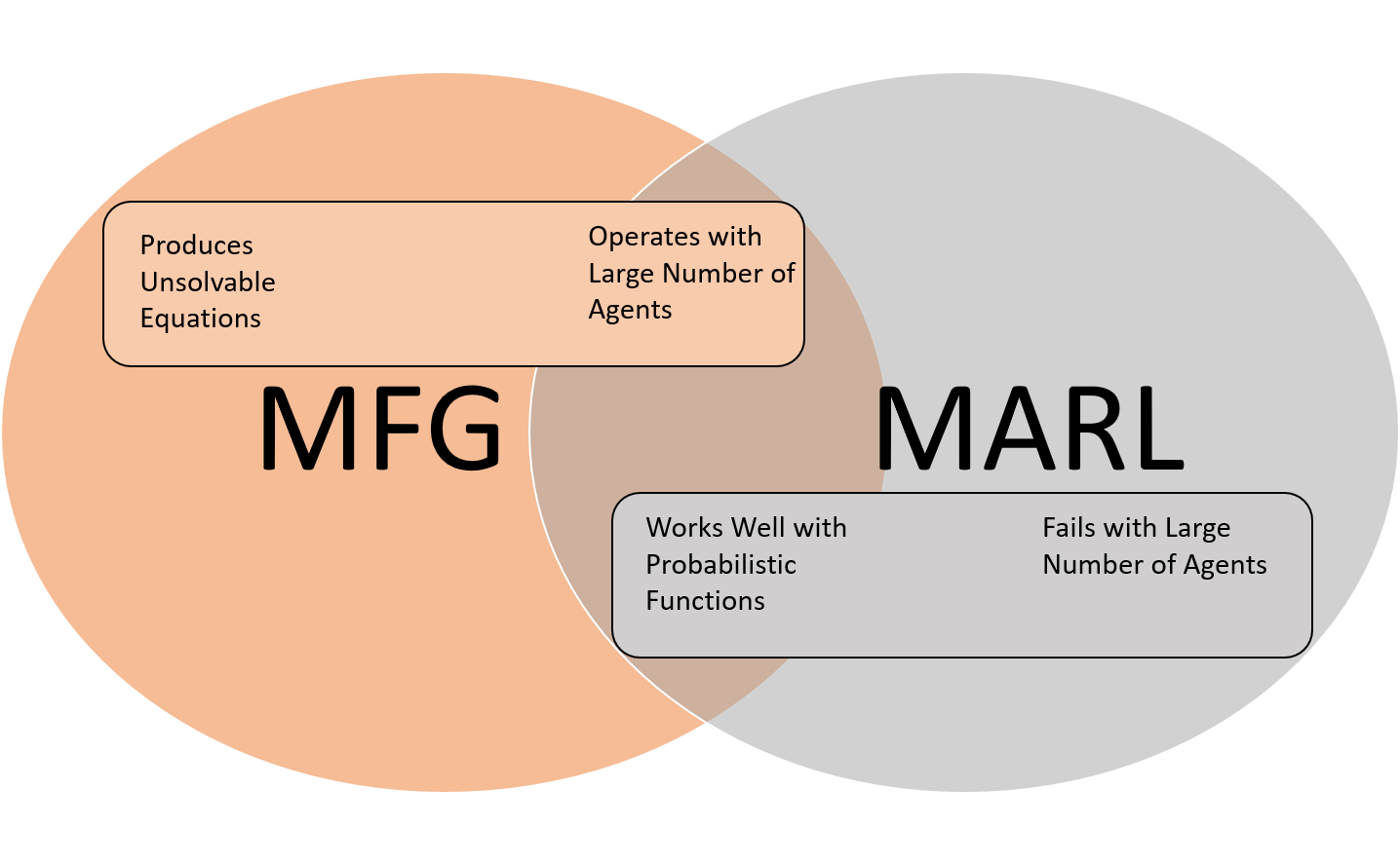 MFG와 MARL의 조합은 두 개의 풀 수 없는 요인이 해결 가능한 방정식을 생성하는 경우 중 하나입니다.