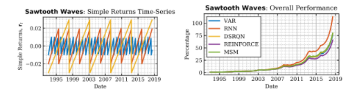 전반적으로 deterministic financial market에서 모든 거래대행자들은 수익성 있는 전략을 배우고 자산배분 과제를 해결한다. 예상대로, 모델 기반 에이전트, 특히 RNN은 정상 동작, 모델링 용이성 및 결정론적 시리즈(예: 사인파, 톱니)에서 상당히 우수한 성능을 발휘하고 있습니다. 반면, 보다 복잡한 설정(예: chirp wave universe)에서는 모델 프리 에이전트가 모델 기반 에이전트와 거의 비슷한 성능을 발휘합니다.