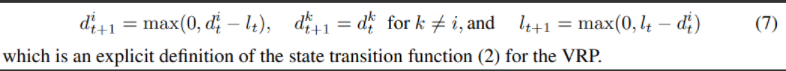 - 관련 주제에 대해, 다이 외. [11] 그래프 내장 구조[10]와 심층 Q-러닝(DQN) 알고리즘을 사용하여 그래프를 통해 최적화 문제를 해결합니다[25]. 가중 노드 및 에지가 있는 그래프로 VRP를 나타낼 수 있지만 VRP에서는 특정 노드(예: 디포)를 여러 번 방문할 수 있기 때문에 제안된 모델이 직접 적용되지 않습니다.