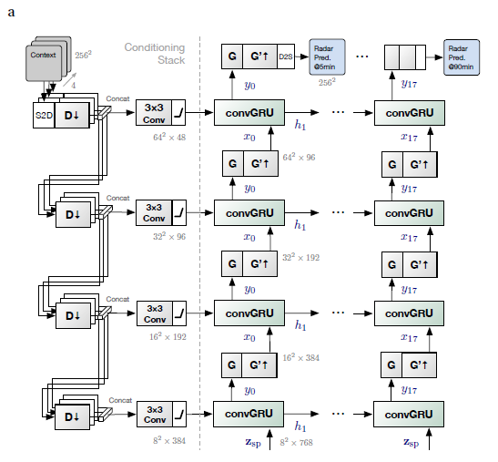 기존의 NWP(Numerical Weather Prediction) 같은 경우는 짧은 시간내에 변화하는 것은 어렵다는 단점이 있는 것을 해결하기 위해 새롭게 연구한 논문인 것 같고 흥미로운 점은 GAN으로 이러한 것을 예측한다고 하는데 좀 더 자세히 읽어봐야 할 것 같다!