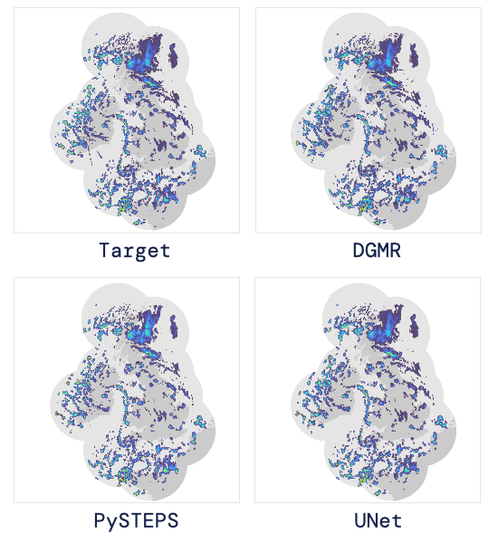이러한 방법을 사용하면 대규모 이벤트를 정확하게 포착할 수 있는 동시에 많은 대체 비 시나리오(앙상블 예측이라고 함)를 생성하여 강우 불확실성을 탐색할 수 있다.