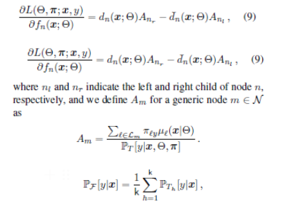 decision tree 학습하기 위해서는 decision node parameterizations과 노드 예측하는 $\pi$가 요구된다.
