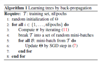 논문에서 각 미니 배치에 대해 F에서 트리를 무작위로 선택한 후 SGD 업데이트에 대해 (Learning Decision Nodes)에서 자세히 설명한 대로 진행합니다.