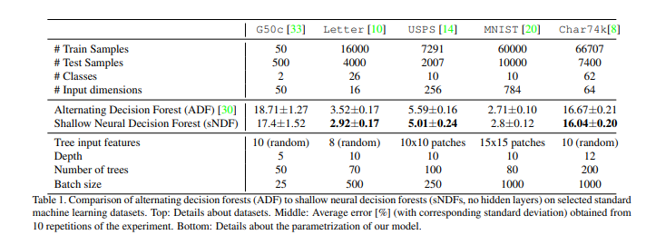 이 논문에서 우리는 (심층) 컨볼루션 네트워크에서 end to end 학습을 위한 대체 분류기로 사용할 수 있는 확률적이고 차별화 가능한 의사 결정 트리를 모델링하고 훈련하는 방법을 보여주었다.