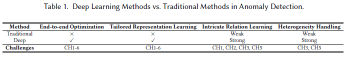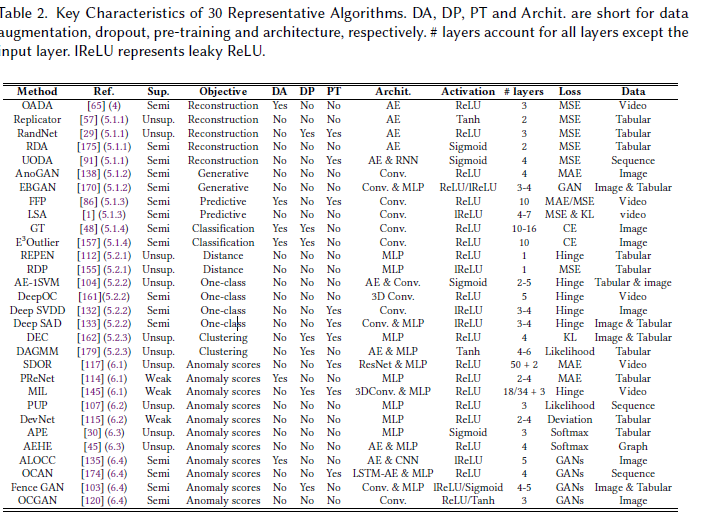 이 논문은 딥러닝 가반의 Anomaly Detection에 대한 논문이고 11개로 세분화해서 잘 설명하고 있다.