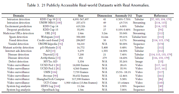 - 우리는 몇 가지 경험적 비교 벤치마크를 제공하기 위해 거의 모든 범주의 방법에 대한 공개적으로 액세스 가능한 소스 코드와 실제 이상이 있는 많은 실제 데이터 세트를 수집해 줄 것을 요청