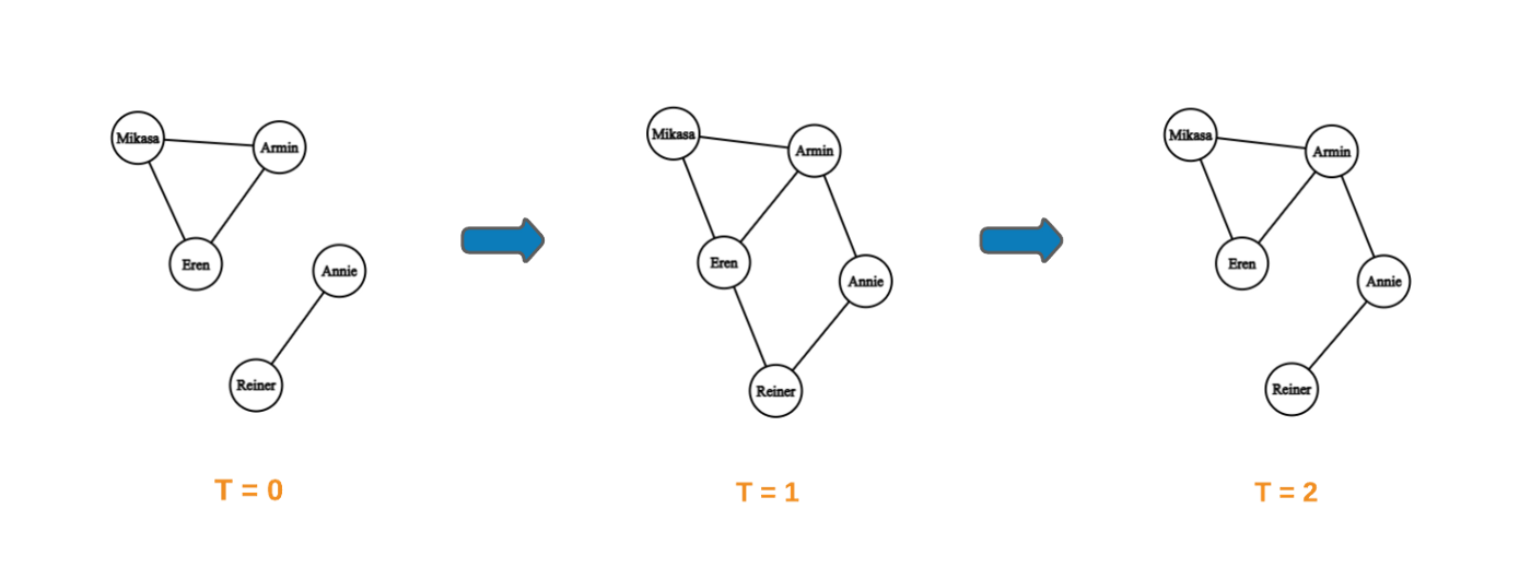 소셜 네트워크의 간단한 예를 사용하여 동적 그래프를 이해할 것입니다.