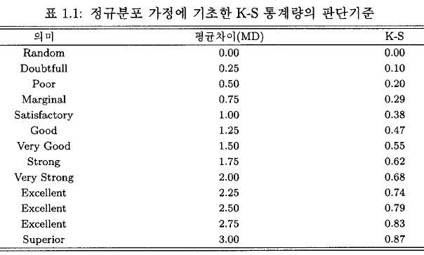 (신용평가모형에서 콜모고로프-스미르노프 검정기준의 문제점 논문 기준)