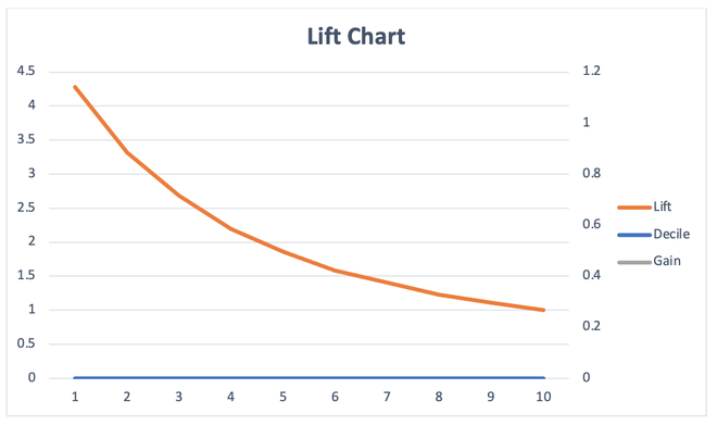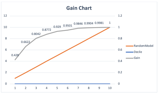 GAIN CHART 및 LIFT CHART는 모델 사용의 이점을 측정하는 데 사용되며 대상 마케팅과 같은 비즈니스 컨텍스트에서 사용되는 두 가지 측정값입니다.