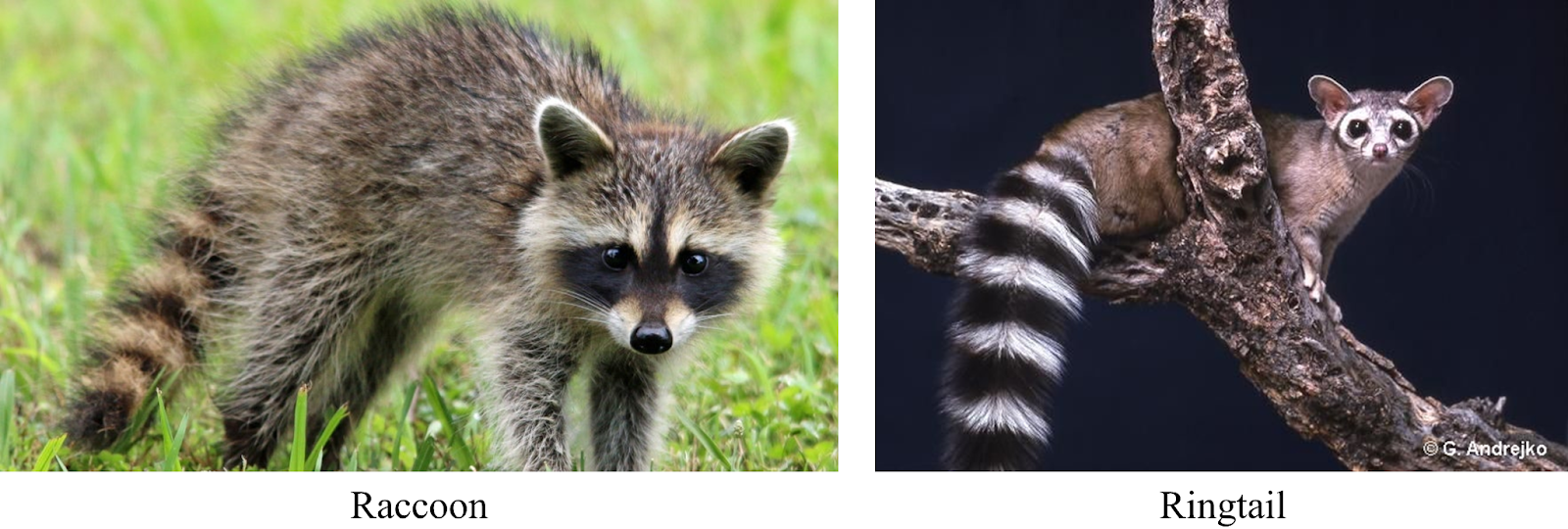 예를 들어, 너구리와 링테일은 매우 비슷해 보입니다(아래 이미지 참조). 둘 다 줄무늬가 있고, 털이 많은 꼬리를 가지고 있으며, 몸의 털 색깔도 비슷하다. 너구리에 대해 음의 표본을 추출할 때, 링테일을 선택하면 모델이 코끼리를 음의 표본으로 선택할 때보다 더 효과적으로 클래스 간을 구별할 수 있다.
