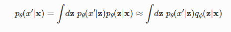 더욱이, 우리는 이 분기를 최적화하는 데 관심이 있는데, 이는 훨씬 더 어렵게 들릴 수 있지만, 실제로 베이즈의 정리를 사용하여 의 정의를 의존하지 않는 다루기 어려운 상수와 아래에 정의된 증거 하한(ELBO)이라고 불리는 다루기 쉬운 용어 사이의 차이로 다시 쓰는 것이 가능하다.