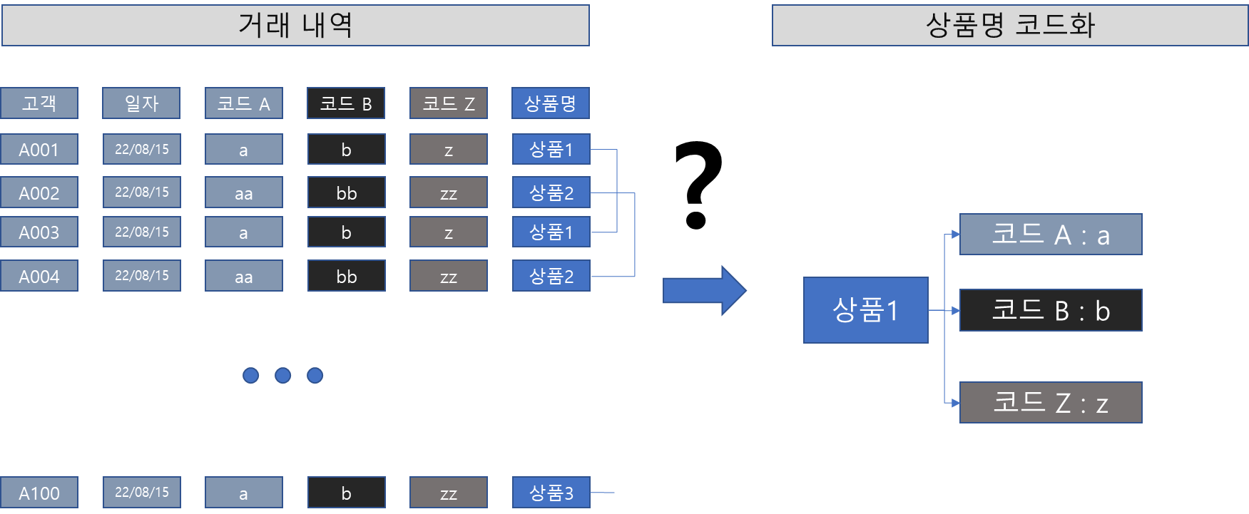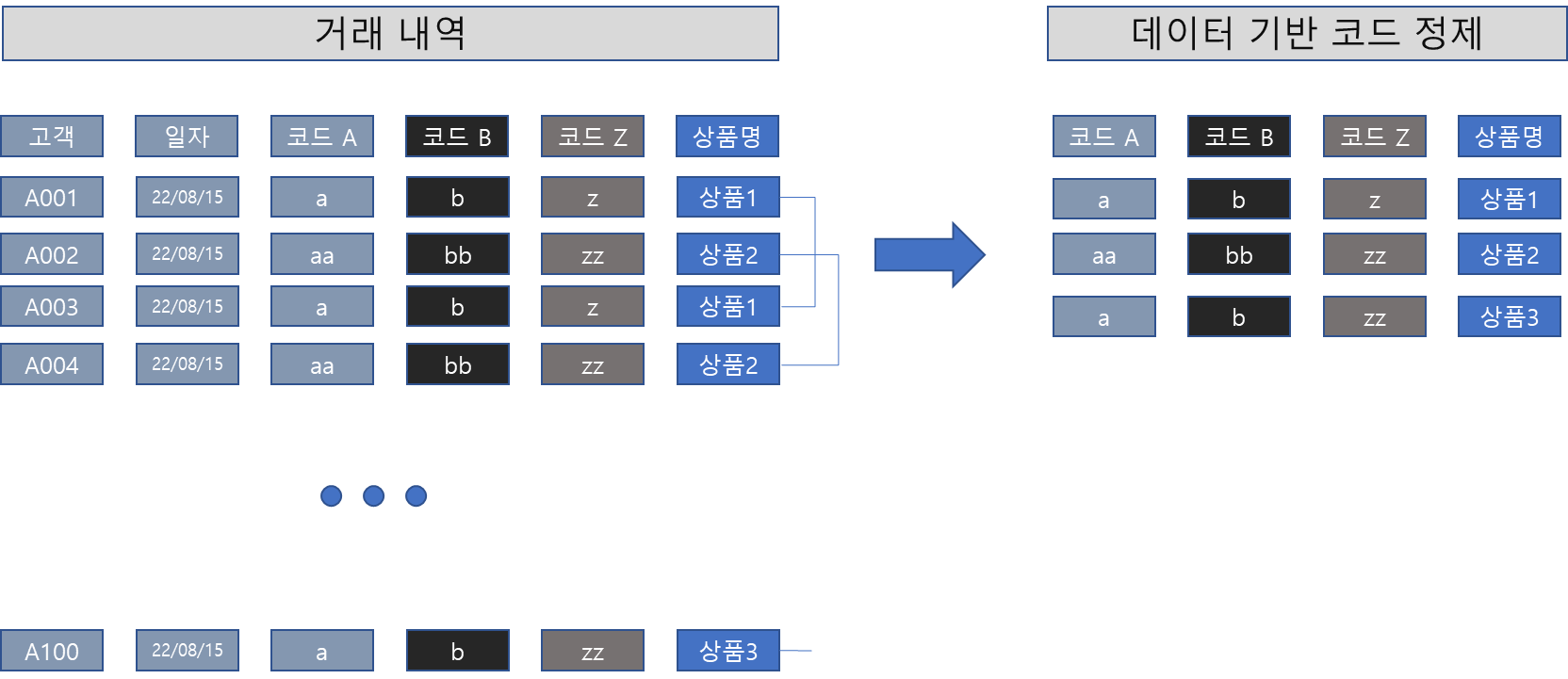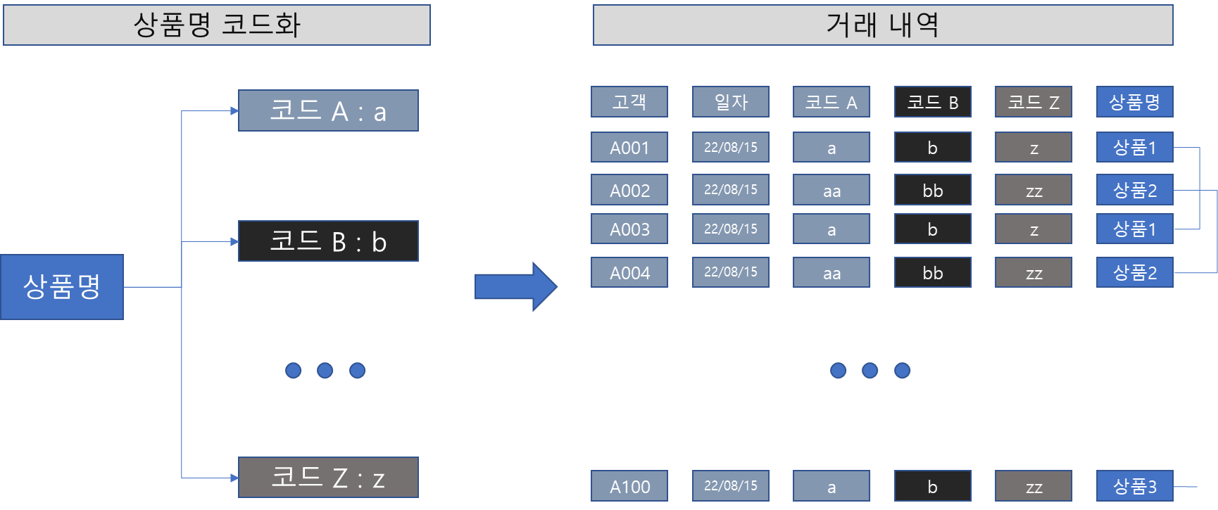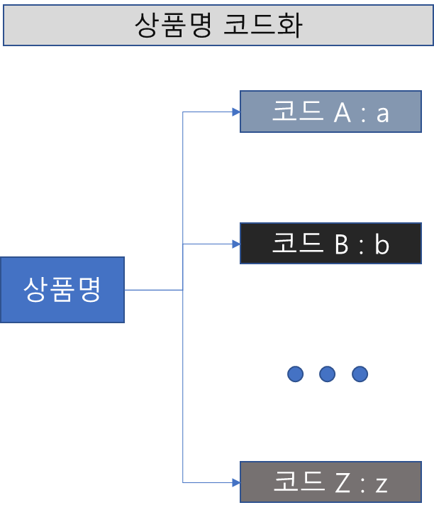 아래 그림처럼 특정 상품에 대해서 여러 개의 코드를 정해서 해당 상품을 표현하게 된다.
