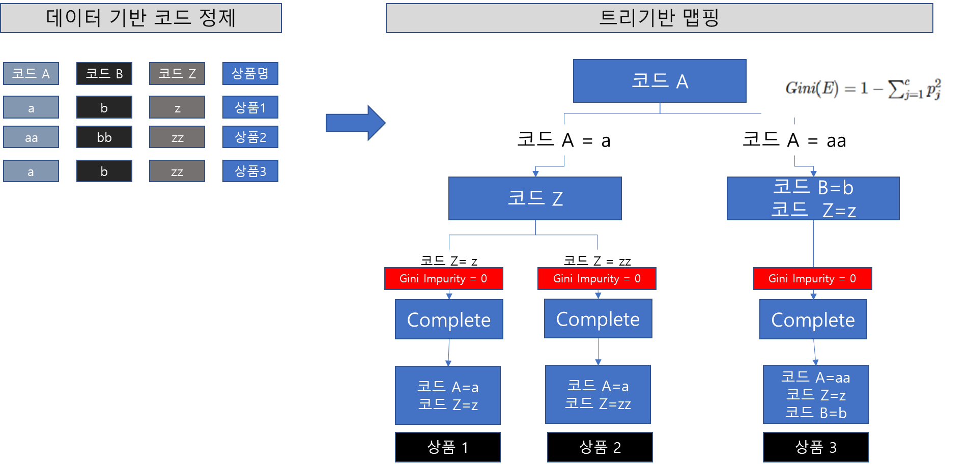 아래 그림처럼 코드들을 불순도를 기준으로 정제해볼 수 있다.