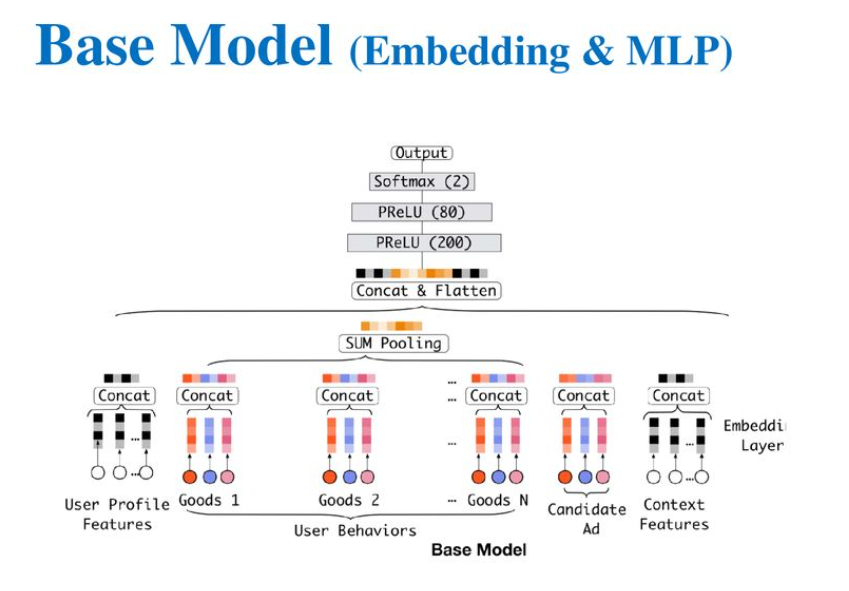 저자들은 이런 문제를 기존에 풀 때는 fixed-length 의 벡터를 사용하고 있다는 것에 대해서 bottleneck이 생겨 유저의 다양성을 학습하는데 어려움이 있다가 하고, 이러한 문제를 해결하기 위해서 특정 광고와 기존 과거 행동등으로 adaptively하게 유저의 행동을 표현함으로써, feature representation을 향상시키는 deep interest network를 주장한다.