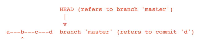 아래의 그림에서는 HEAD가 브랜치가 아닌 커밋 b를 가리키고 있다.